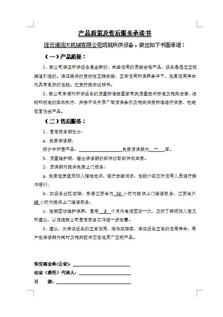 產(chǎn)品質(zhì)量及售后服務(wù)承諾書